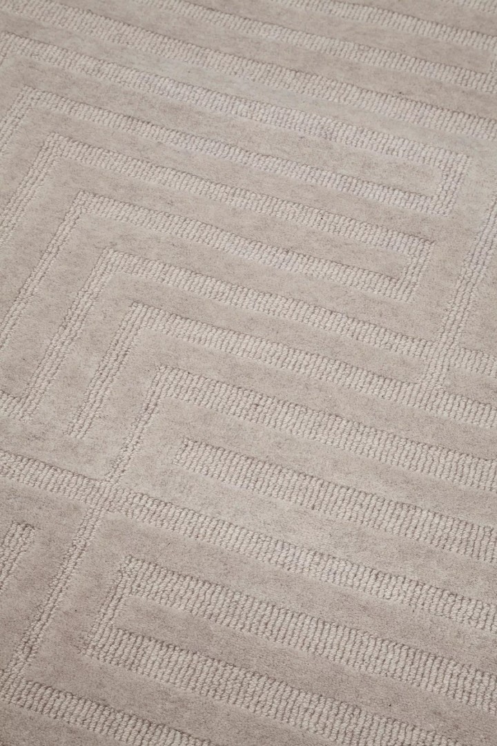 Borges je tepih definisan svojim strukturiranim, prefinjenim dizajnom, gde naizmenične gustine površina stvaraju savršeno simetričan geometrijski obrazac pravougaonih oblika, koji se ponavljaju u urednom ritmu po površini.