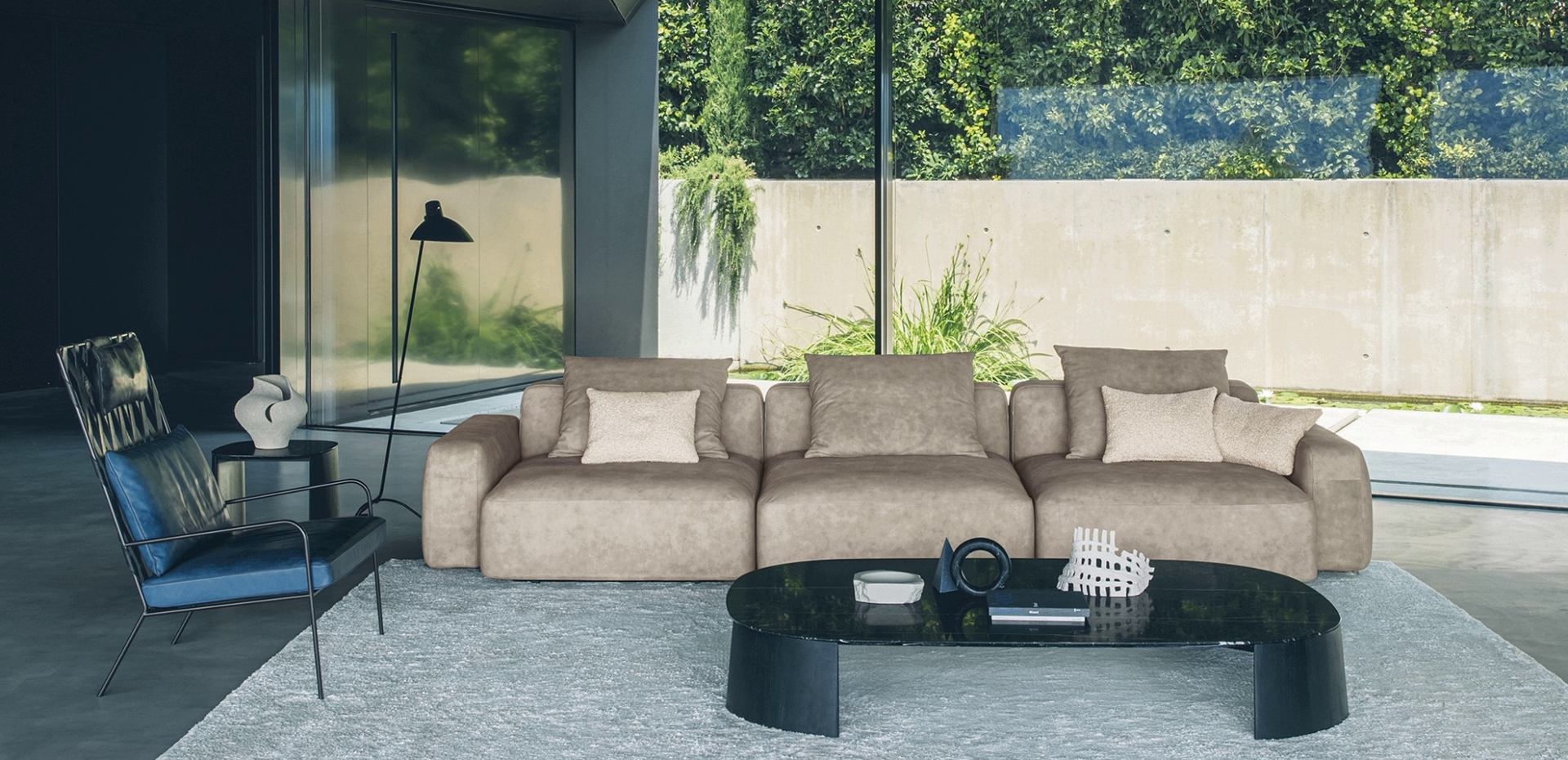 Dizajnirana da stvori ravne, ugaone ili ostrvske rasporede, sofa može biti presvučena bilo kojom vrstom tkanine ili kože.
