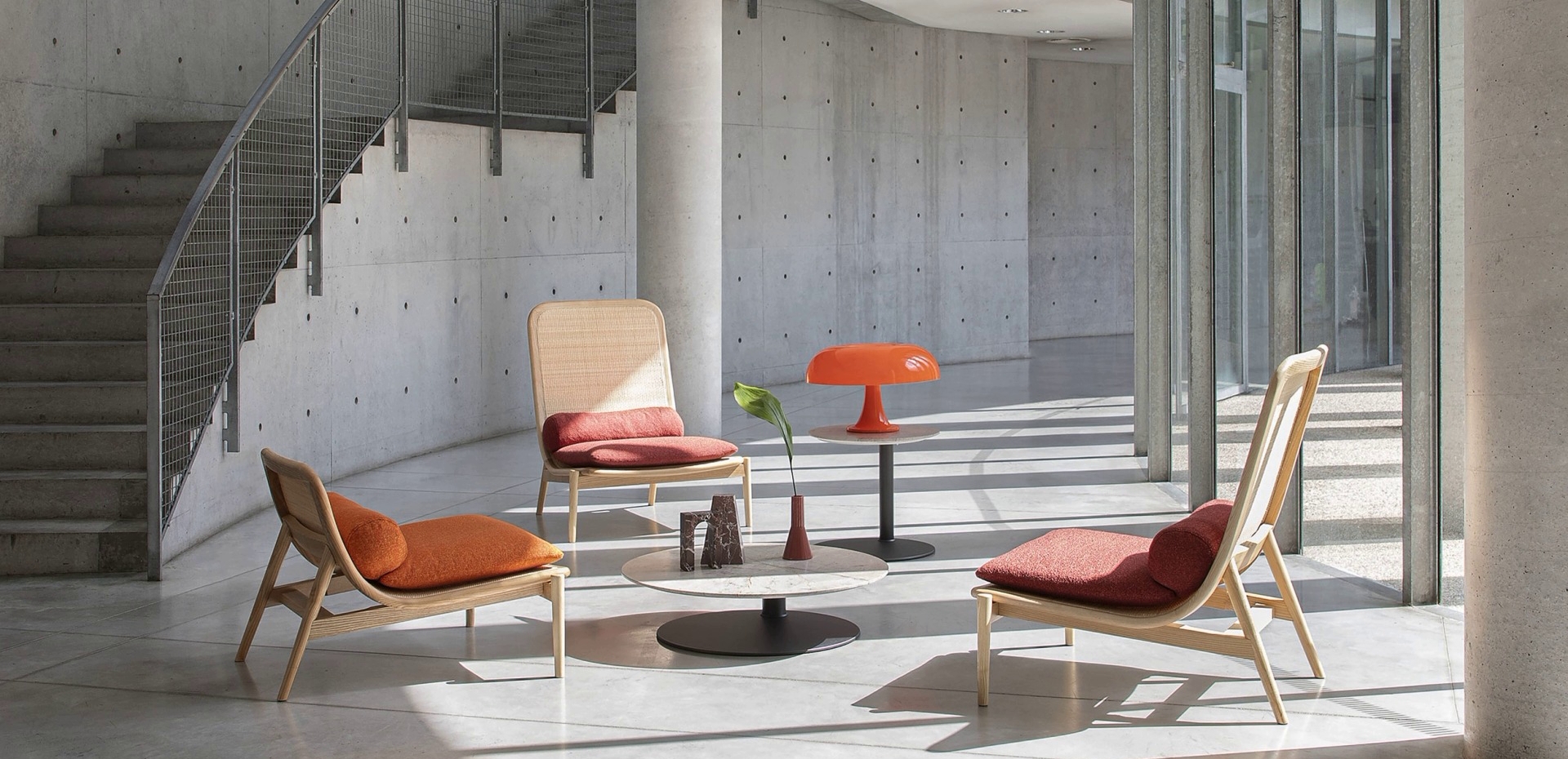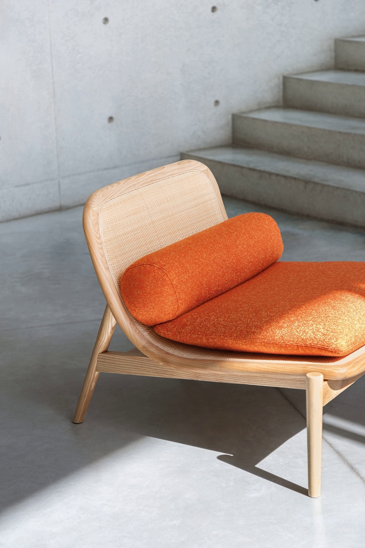 Dostupna je u varijanti sa visokim ili niskim naslonom, koji se savija kako bi oblikovao sedište u jednoj neprekinutoj liniji, minimalističkim i gracioznim zavojima koji objedinjuju formu i funkciju, stvarajući utisak da lebdi između nosača.