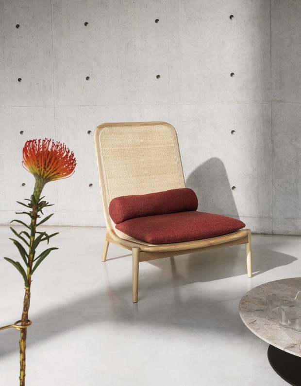 Napravljena od prirodnog ili ugljeno sivog jasenovog drveta i tkanih vlakana trske, fotelja Eben ima jednostavan i udoban dizajn koji se odlikuje blago zakrivljenim naslonom.