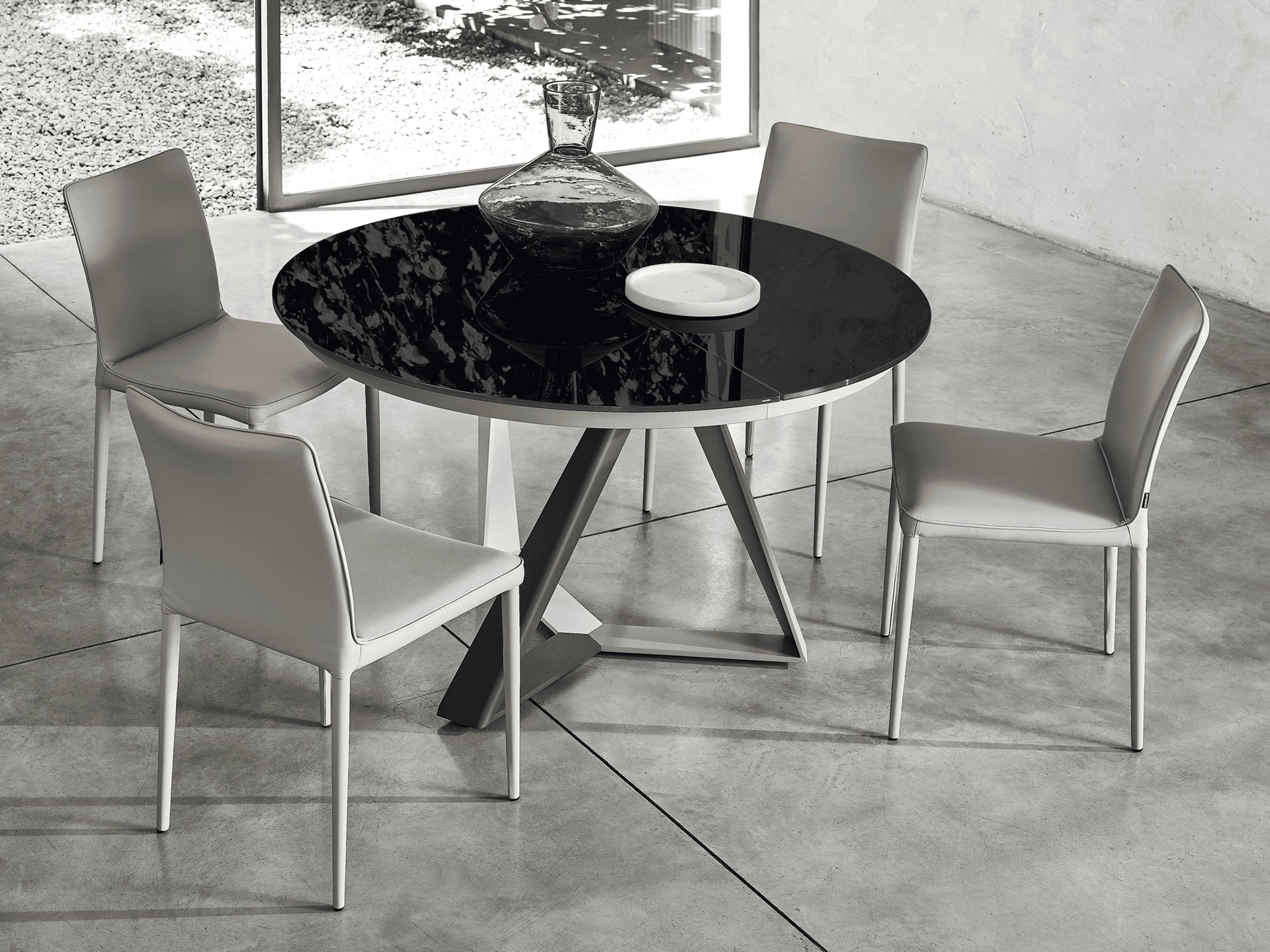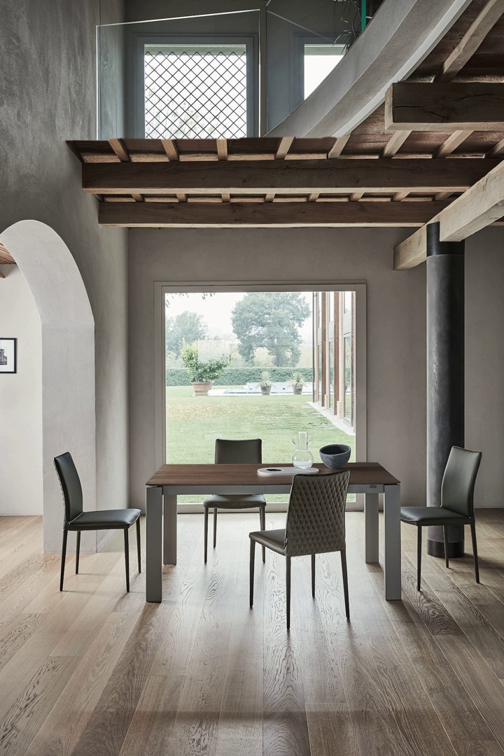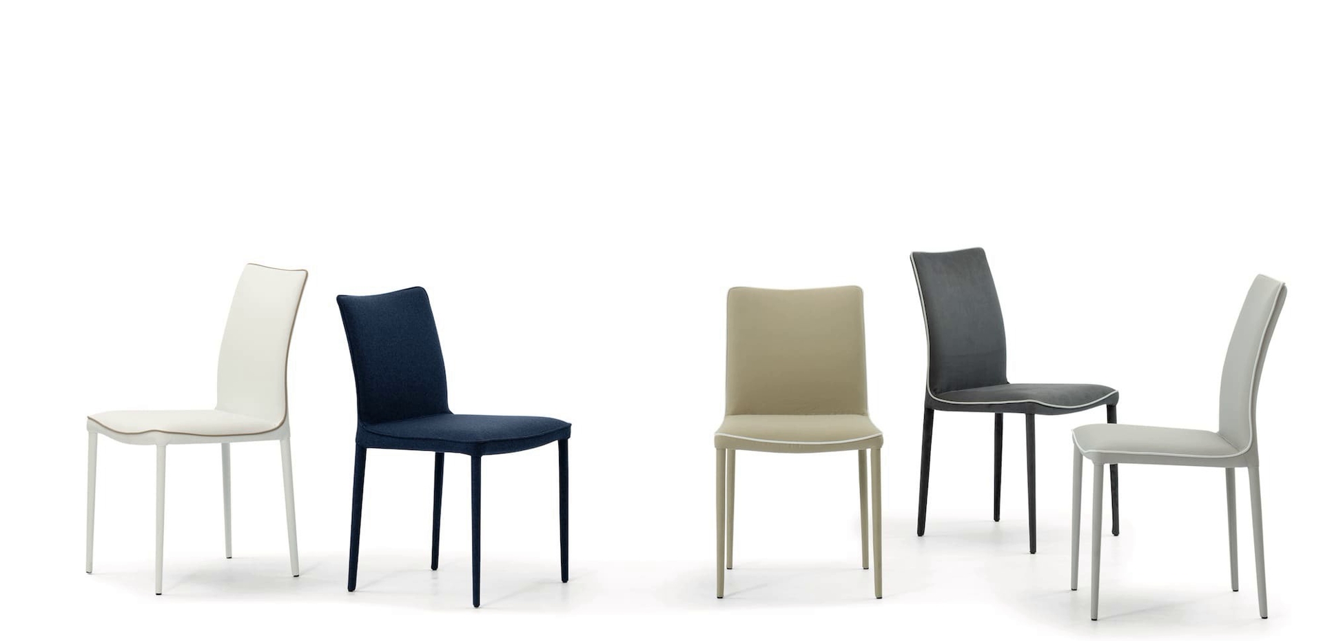 Na raspolaganju i stolica sa fleksibilnim i ergonomskim naslonom u dve verzije sa metalnim ramom i tapaciranom i pokrivenom školjkom ili sa metalnim okvirom potpuno tapaciranim i pokrivenim.