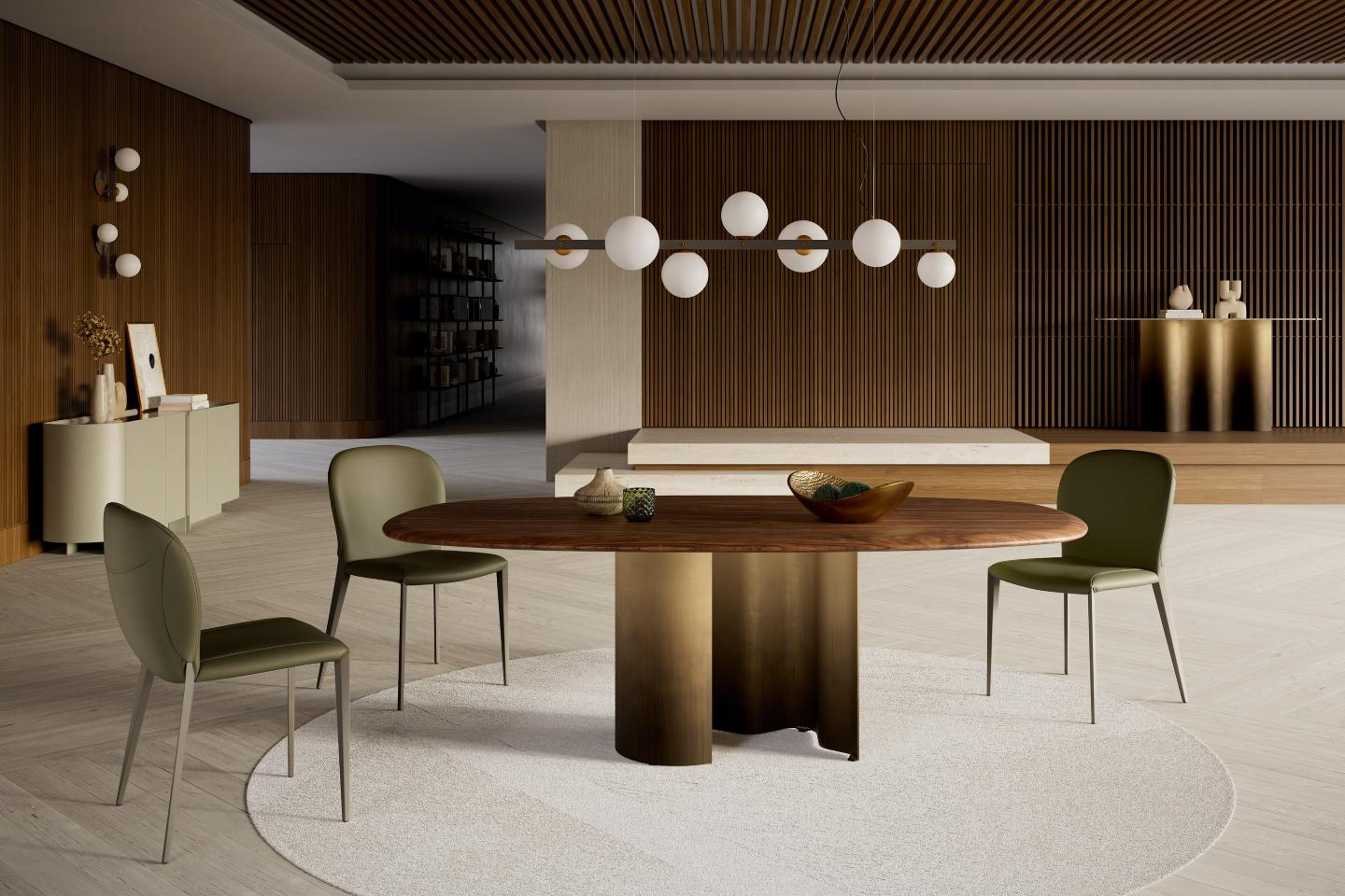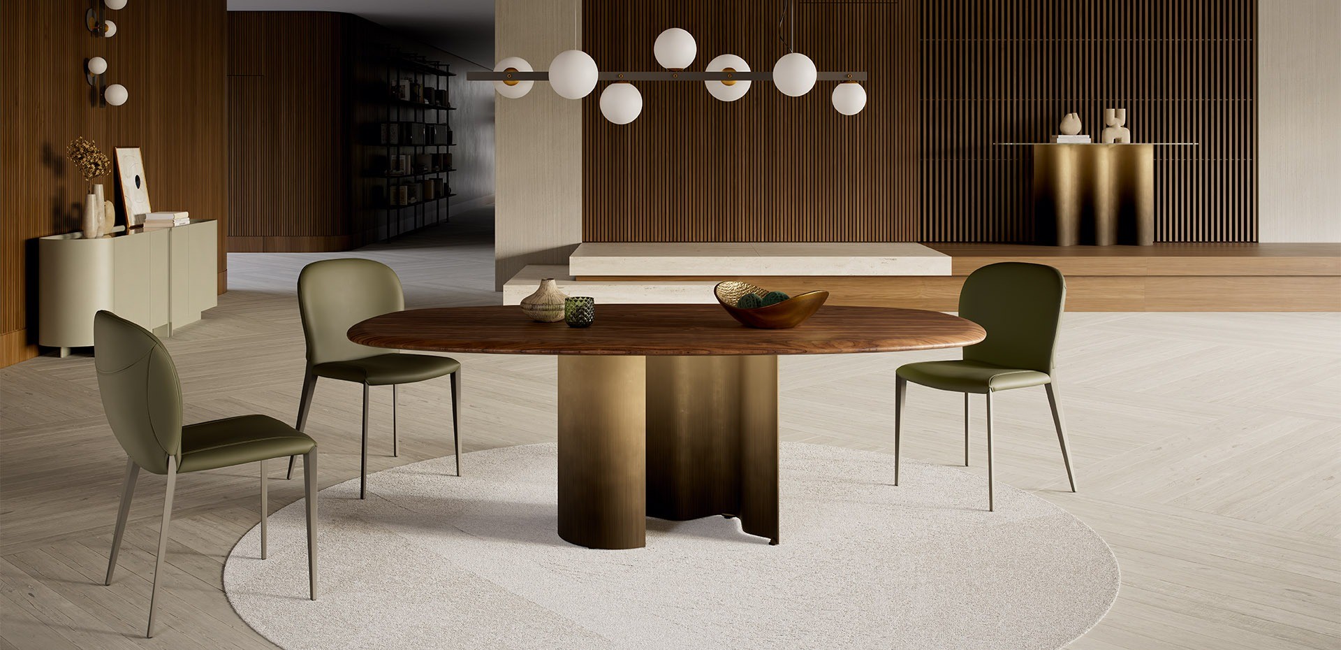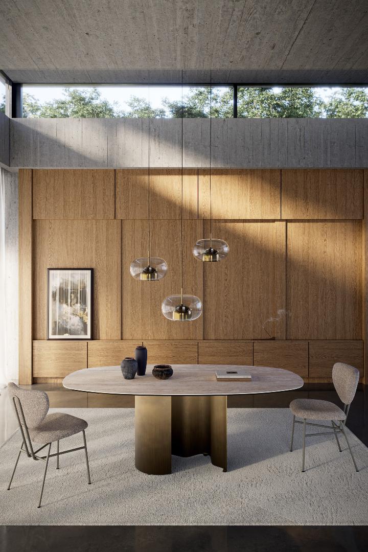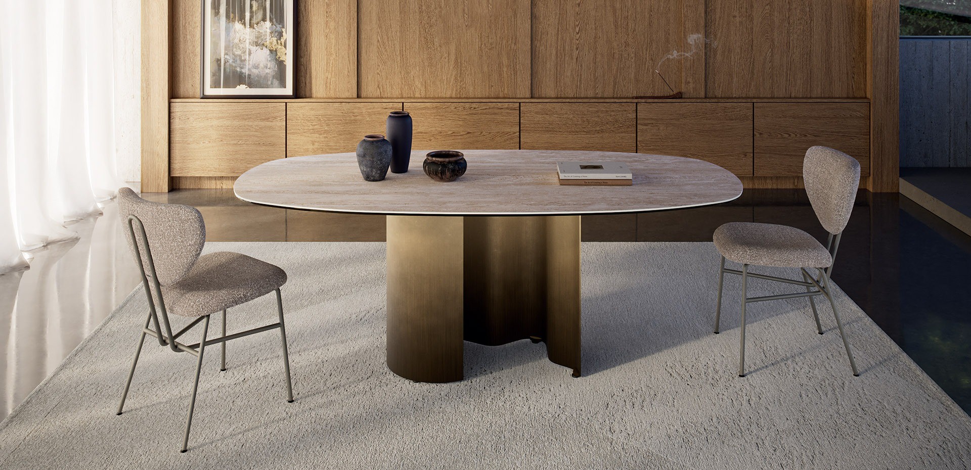 Porodica stolova Papelito zamišljena je kao sto-skulptura koja pruža glamuroznu predstavu, oživljavajući vrhunsku modernu trpezariju.