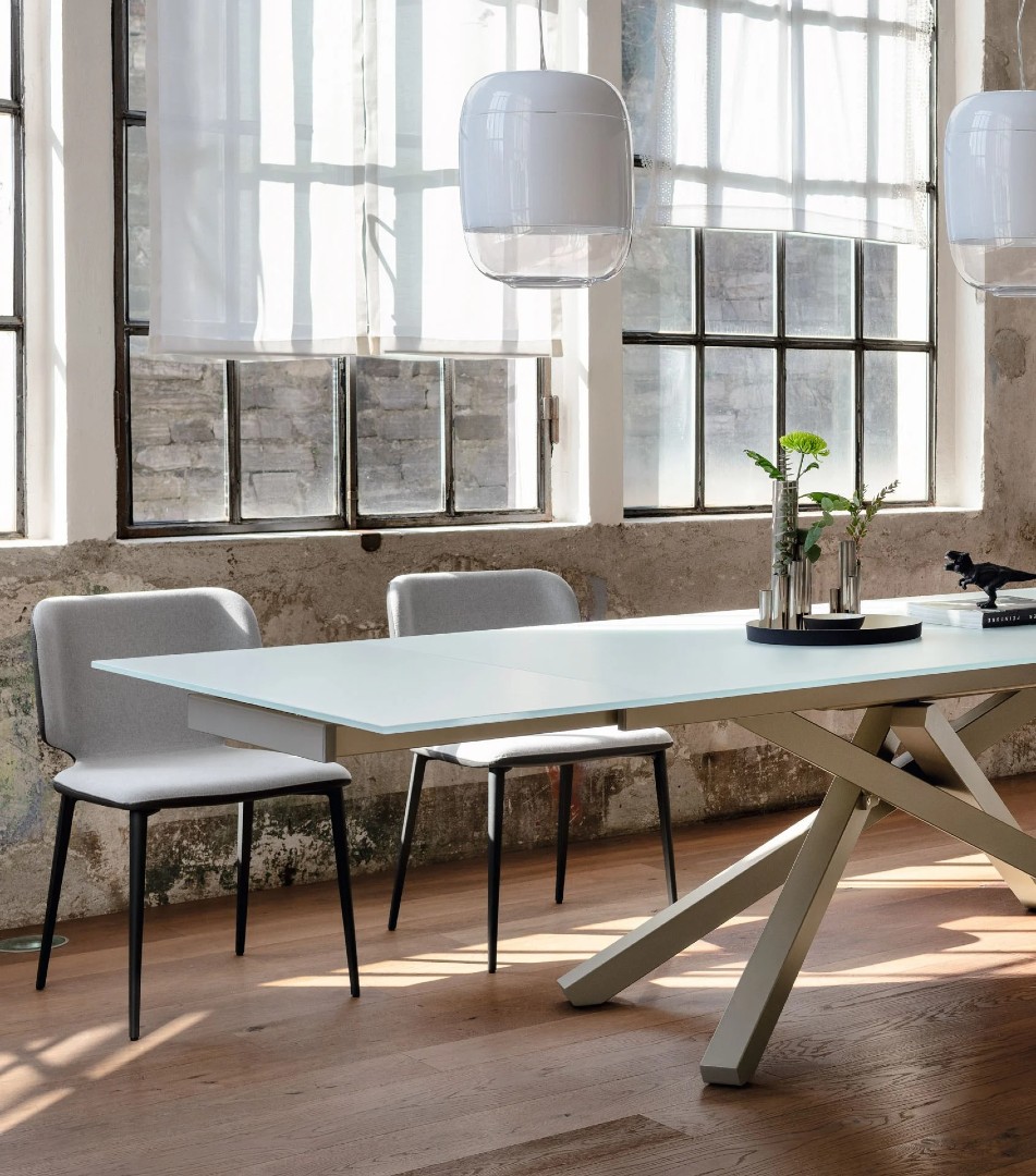 Kolekcija uključuje i fiksne i stolove na rasklapanje, nudeći fleksibilnost u opremanju prostora različitih veličina.