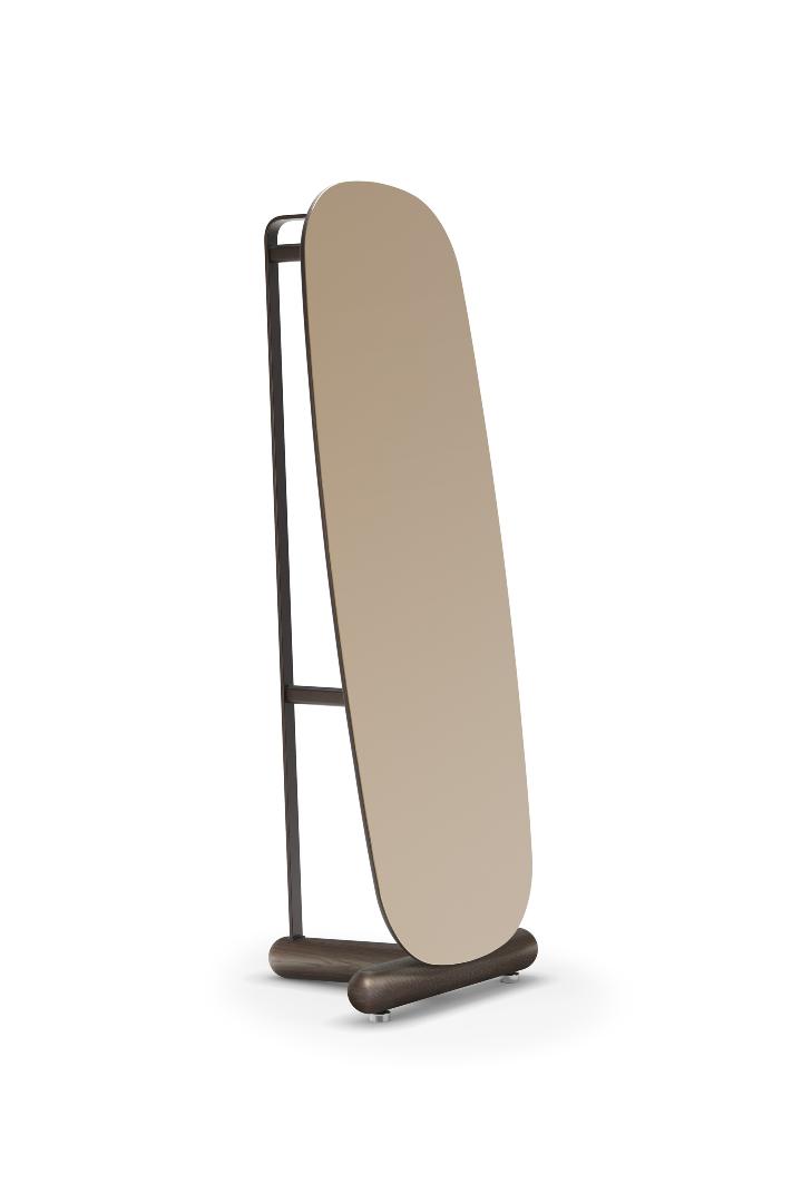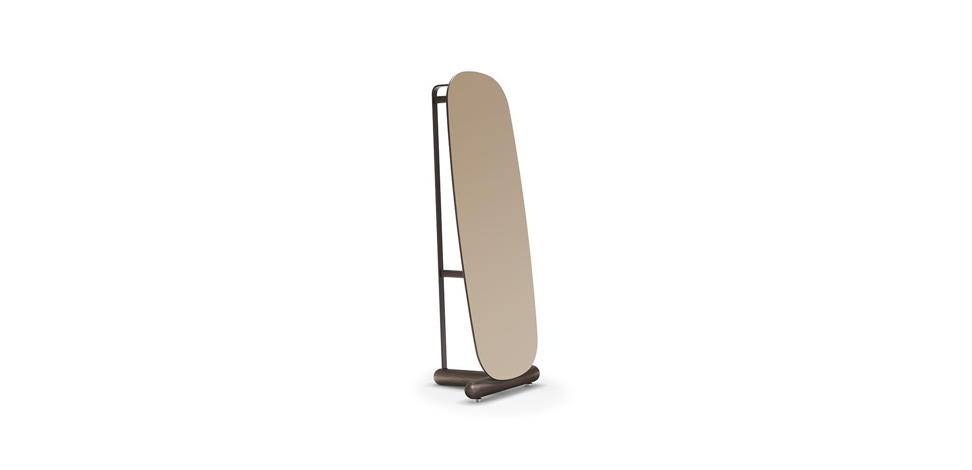 Ogledalo Pierre sa stalkom za odeću predstavlja široku reflektujuću površinu sa mekim konturama i zaglađenim ivicama.