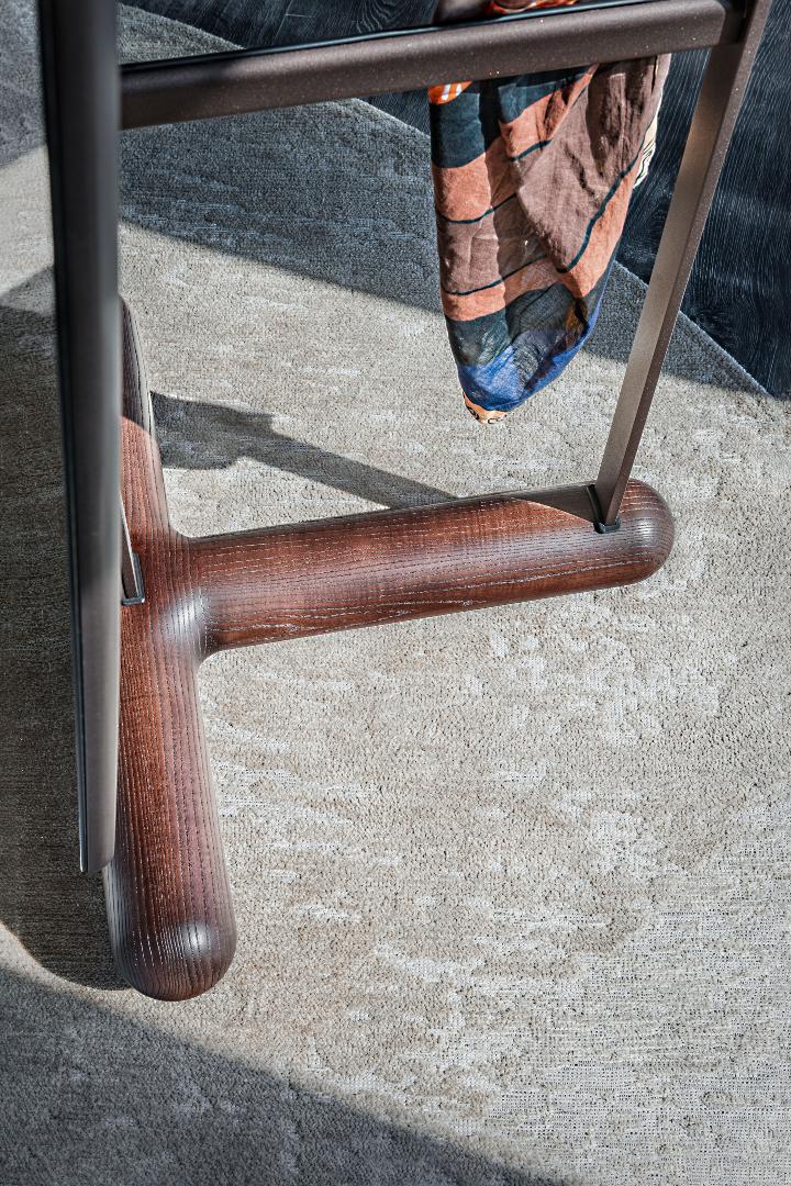Robusna osnova je izrađena od drveta, sa prepoznatljivim, voluminoznim i zaobljenim T-oblikom.