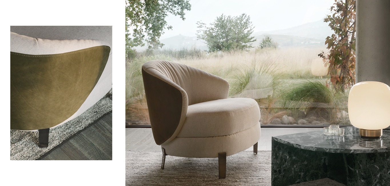 Koncept naglašava kontrast između čvrstog okvira i mekoće jastuka i omogućava stvaranje zanimljivih kombinacija boja između okvira i podloge.