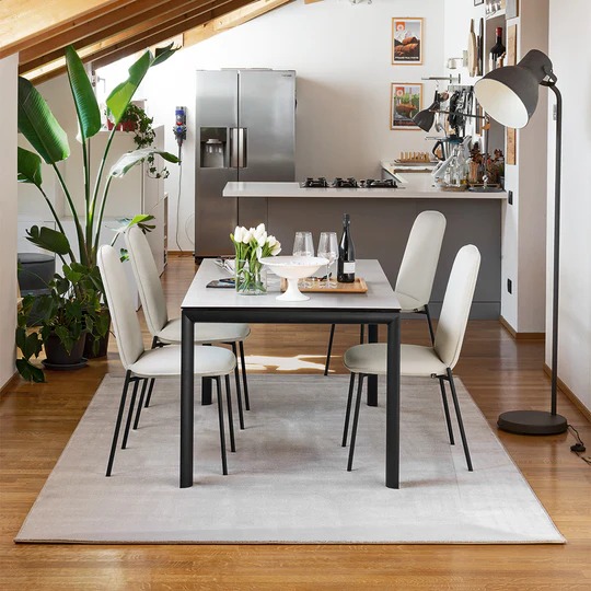Ova stolica ima metalnu osnovu sa 4 noge i visok naslon, što je čini pogodnom za kućnu upotrebu i za ugovorne potrebe.
