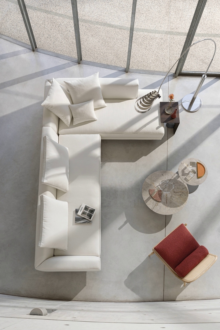 Trapezoidni naslon i naslon za ruke presvučeni uklonjivom tkaninom ili kožom upareni su sa udobnim sedištem i prilagodljivim jastucima.