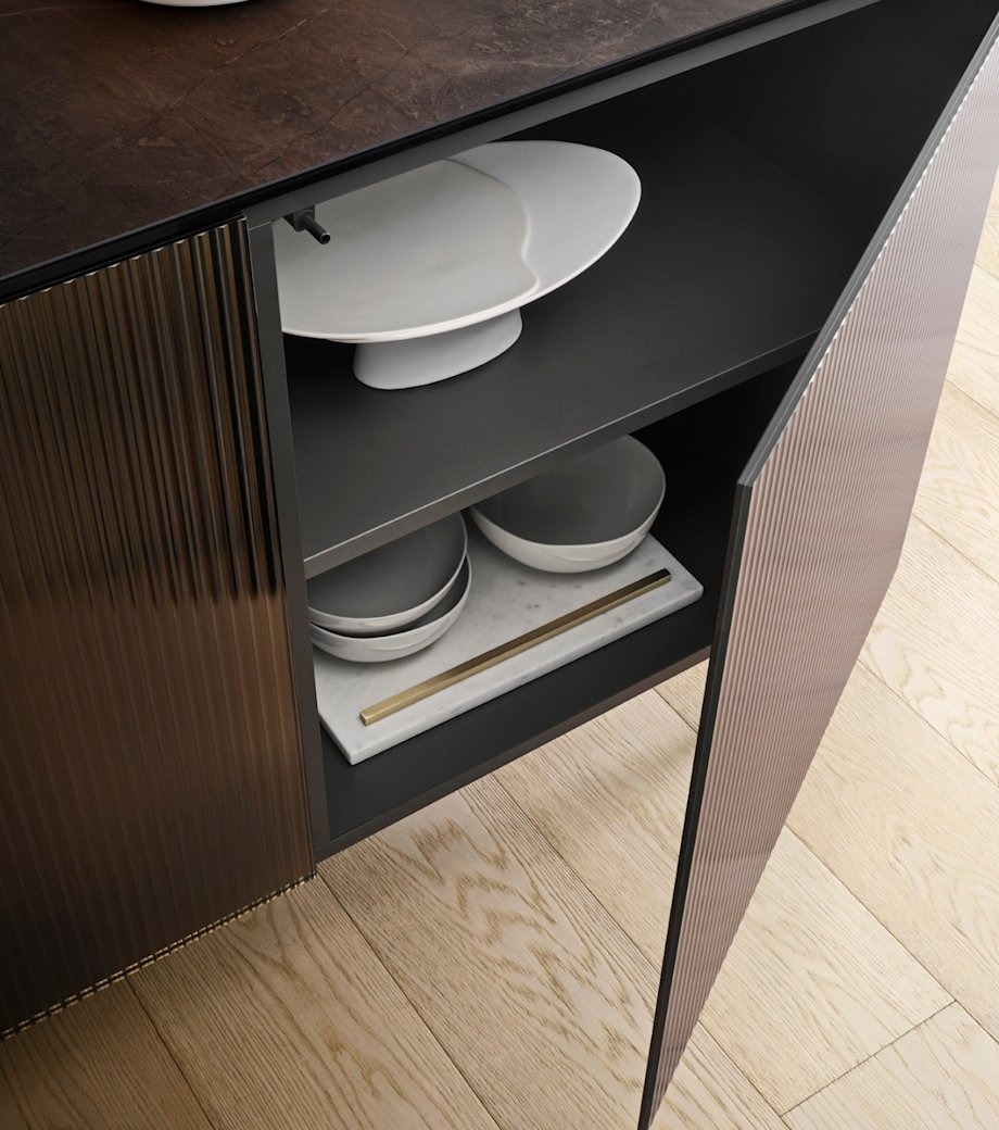 Drvo, toplo i sofisticirano, poboljšava materijal, donoseći novu taktilnu dimenziju životnom prostoru.