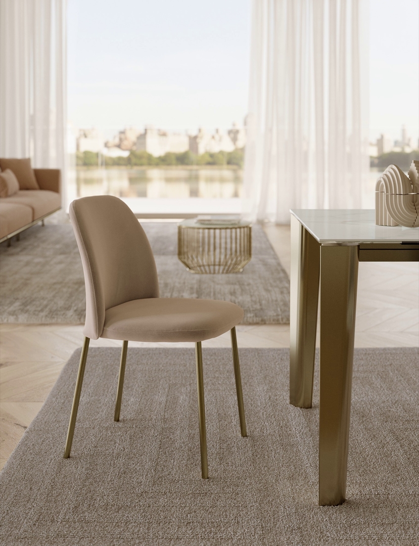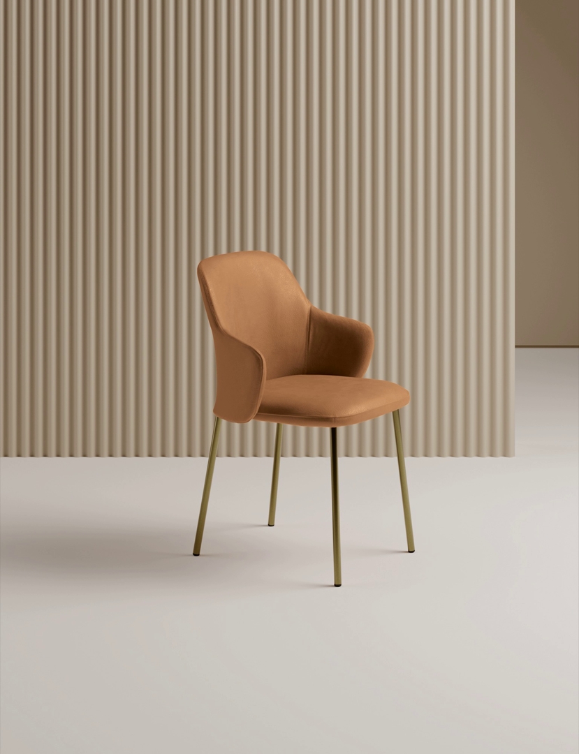 Vivian je tapacirana stolica sa metalnim okvirom.